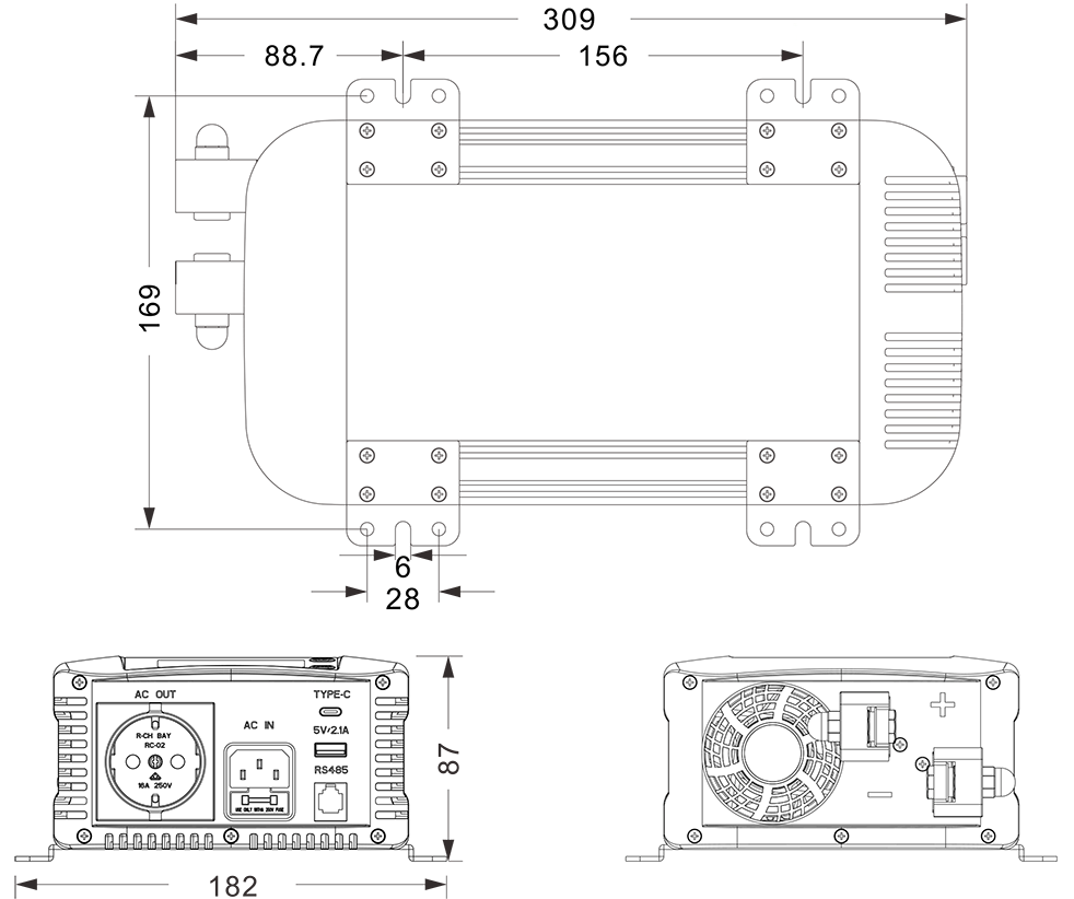 Mehanske risbe: (309x182x87mm)